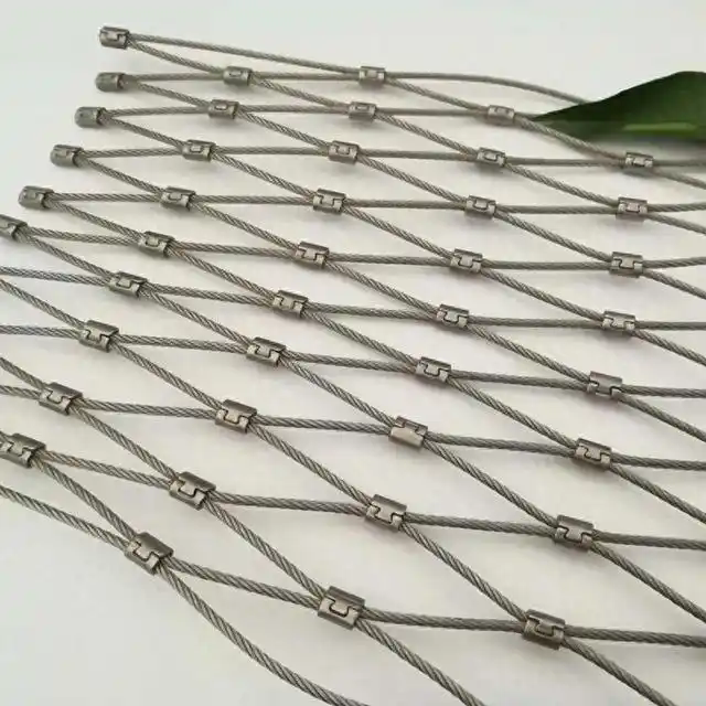 Zarówno sieci kablowe typu uzbrojone, jak i ferrule mają wzory rombowe, ale różnią się w sposobie łączenia kabli.Ten ostatni otrzymał swoją nazwę od bezszwowych żurawi do łączenia. A kolor siatki kablowej typu ferrule może być dostosowany. Jeśli chodzi o siatkę kablową, nasza firma może zapewnić usługi dostosowane do różnych potrzeb Twojego projektu.rodzaj uzbrojony i rodzaj ferrule na prawym zdjęciu są bardziej mile widziane przez naszych klientów.